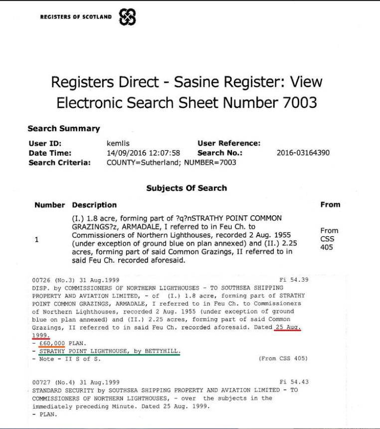So here is a source of impeccable information:, or north of the Border (where there are around 200 lighthouses to 60 south of the Border), the Land Registry is termed “The Registers of Scotland.”